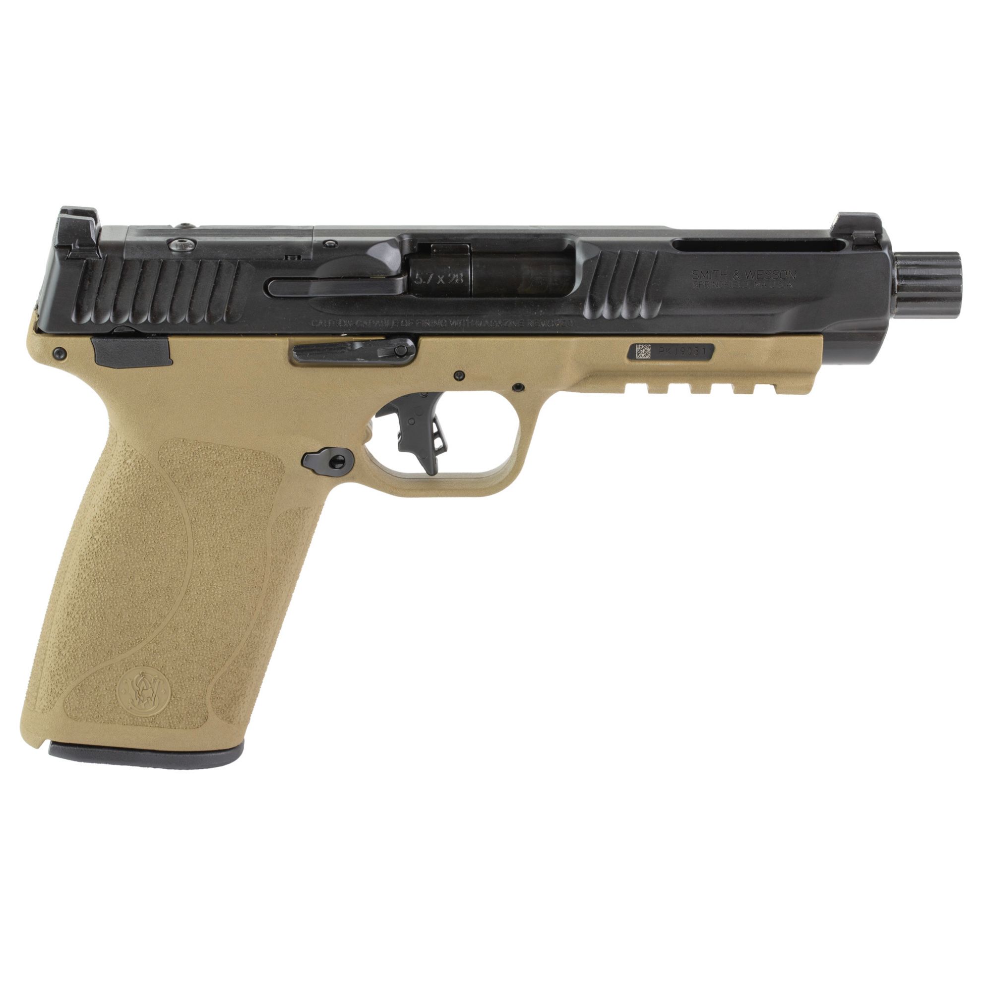 Smith & Wesson, M&P 5.7, Semi-automatic, Single Action Only Internal Hammer Fired, Full Size, 5.7X28MM, 5" Threaded Barrel, Optics Ready, 3 Dot Sights, Flat Dark Earth Frame, Black Slide, 22 Rounds, 6 Magazines, Includes Savior Specialist Bag
