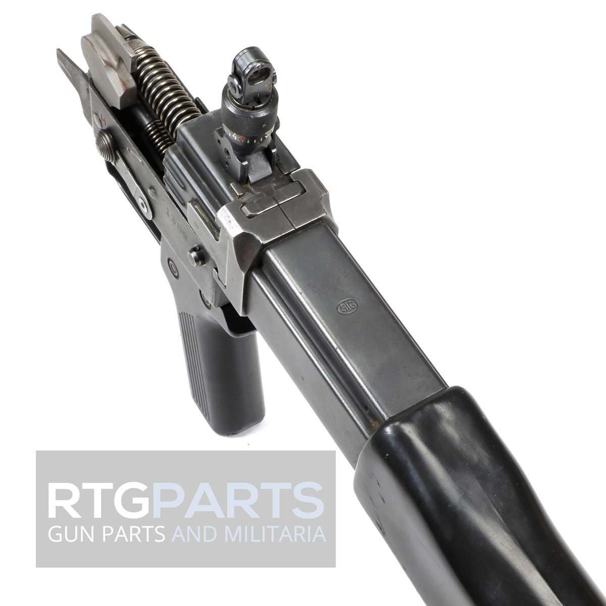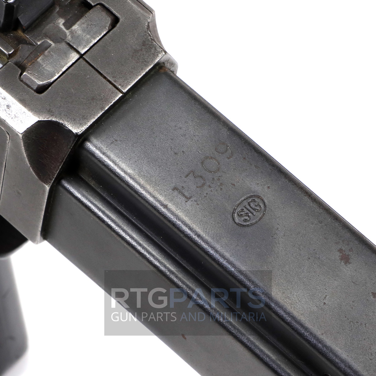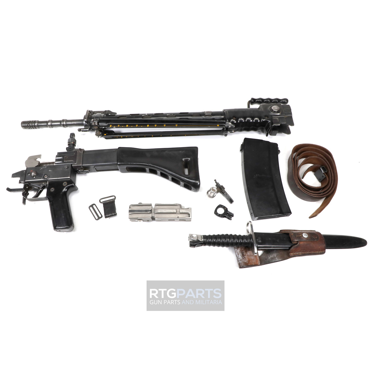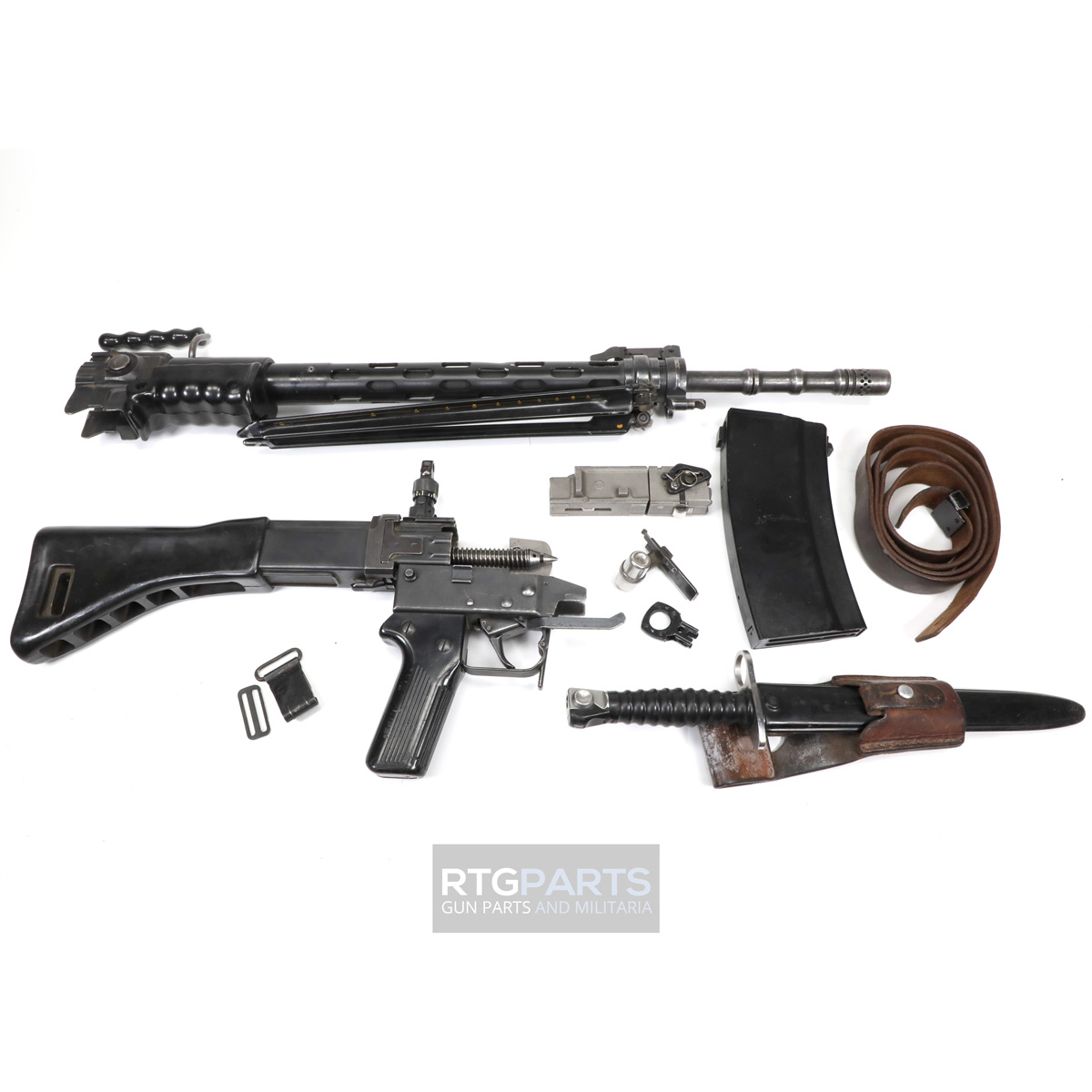 Here we have an original Swiss select fire PE57/STG57 parts kit with original barrel. This beautiful kit includes an original barrel, sling, snap on night sight and a Swiss bayonet. What a great post sample this would make. Please review images carefully, includes everything pictured, nothing not pictured.
