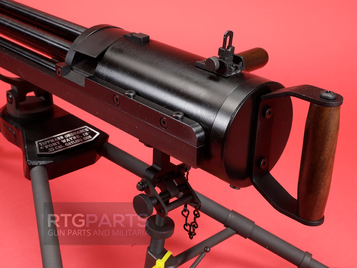 This is one of a five piece Run by Tippmann Ordnance. 16" This deluxe version of their popular .22LR hand crank gatling gun includes blued finish, 16" barrels and brass sight ring.