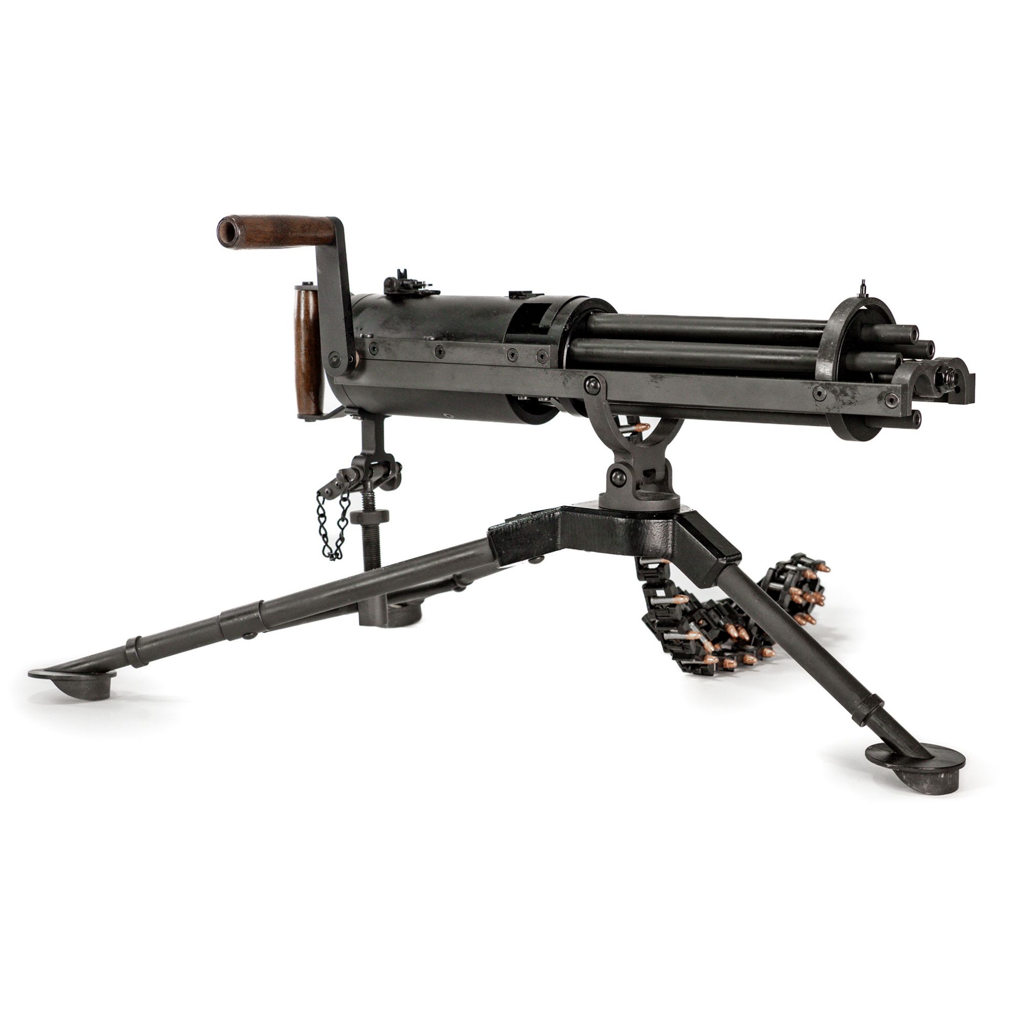Prepare to be amazed as you lay eyes on this exceptional piece of engineering. Tippmann's 22LR Gatling gun packs a punch in a compact size, offering an exhilarating shooting experience like no other. Just imagine the sheer joy of cranking out round after round with ease, thanks to its hand-crank action. And with a barrel length of 8.5" and 50 belt links included, this Gatling gun is primed for continuous, uninterrupted firing. Weighing in at a mere 15 lbs., it's lightweight and portable without compromising on performance. Perfect for enthusiasts and collectors alike, this Gatling gun is sure to leave a lasting impression.