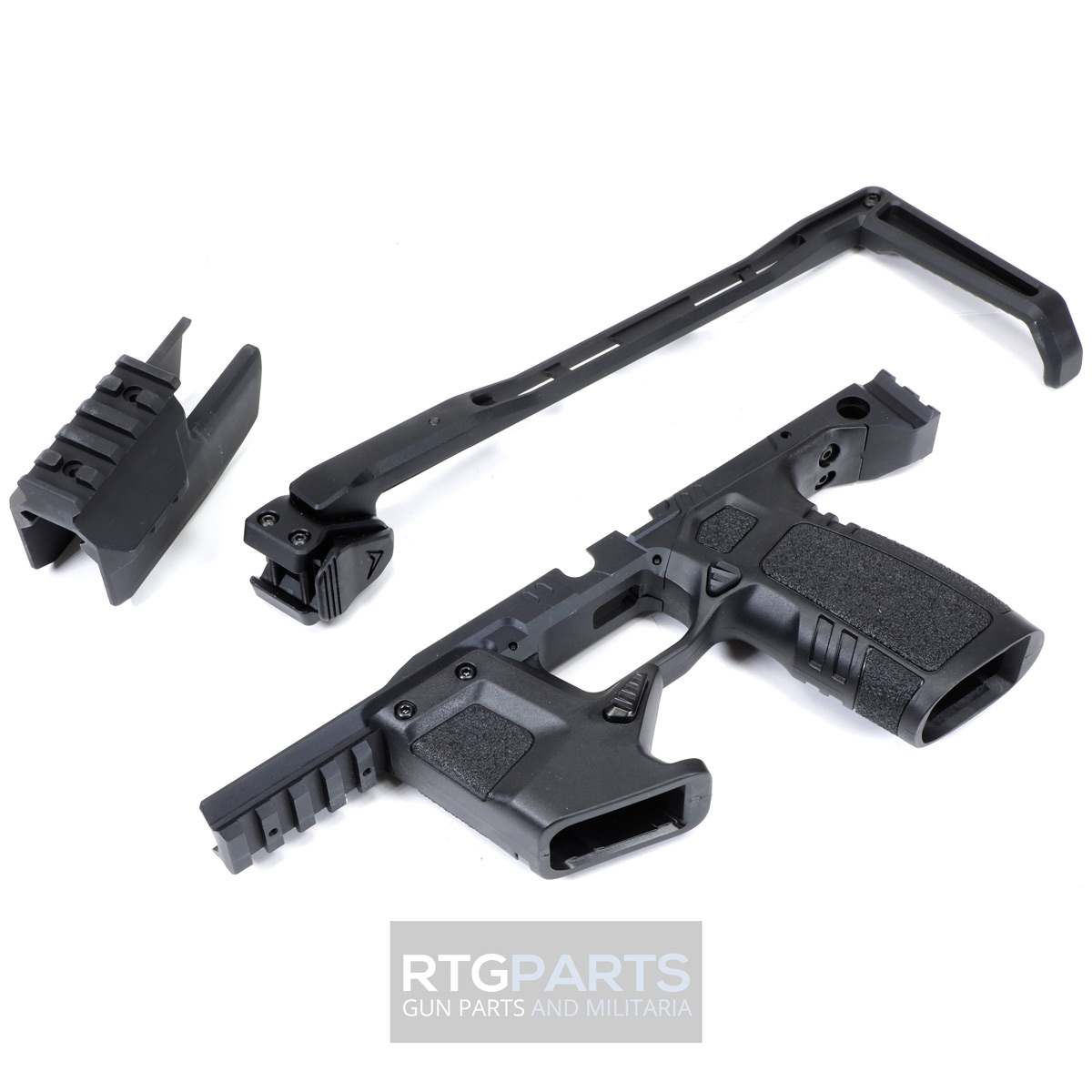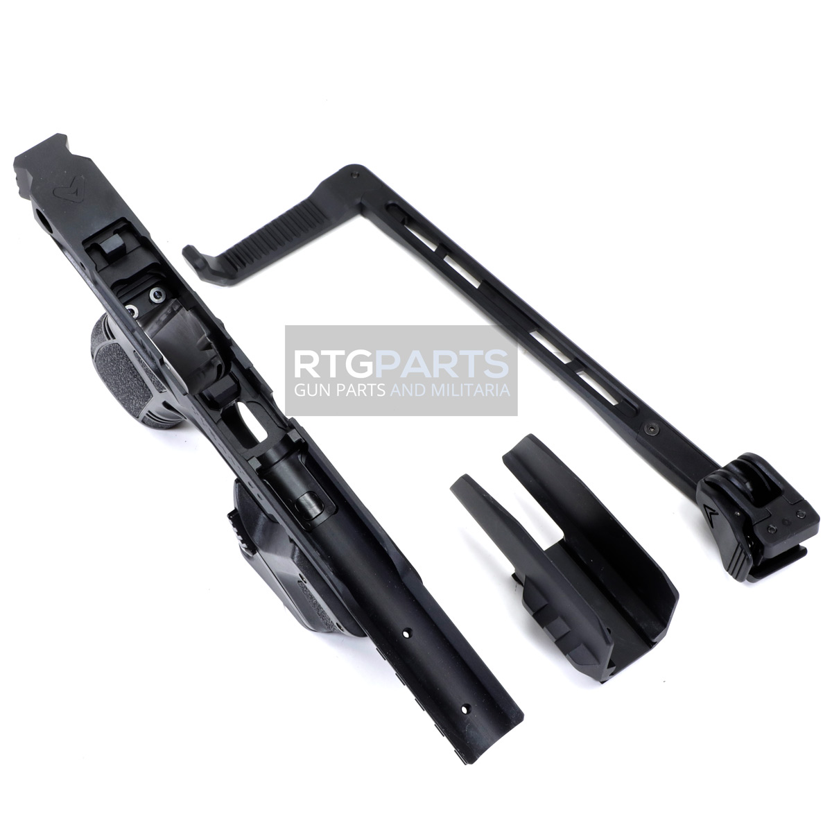 - Includes Aluminum Spring Loaded Pistol Brace, Aluminum Receiver/Blast Shield and Injection Molded Pistol Grip and Magazine Carrier