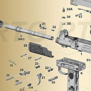 IMI Front sight set. Surplus excellent condition, many are new old stock. Uzi part # 33, 34, 35 on our Uzi drawing.