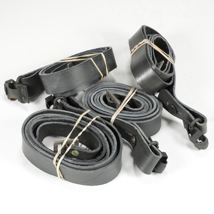 These slings are in great shape. Most appear unissued. They are old, so the leather is a bit stiff, but can be softened up with some saddle soap or any usual leather conditioners. They will also soften up from normal use. They are not brittle or cracking.