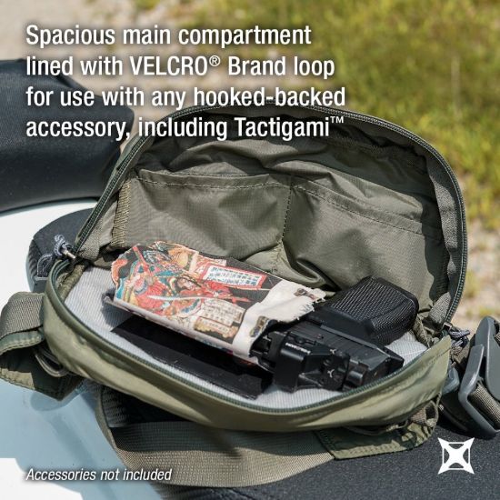- Spacious main compartment features VELCRO Brand loop for flexible customization using our Tactigami accessories